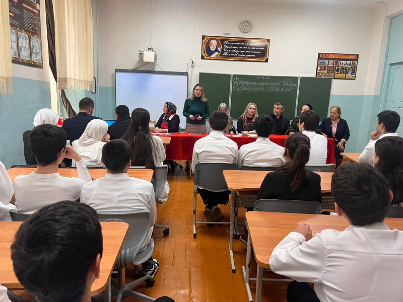 Заведующая по производственному обучению Гасанова И.П. провела профориентационную работу с учащимися 9-11 классов в СОШ №25 и №57 поселка Красноармейск.